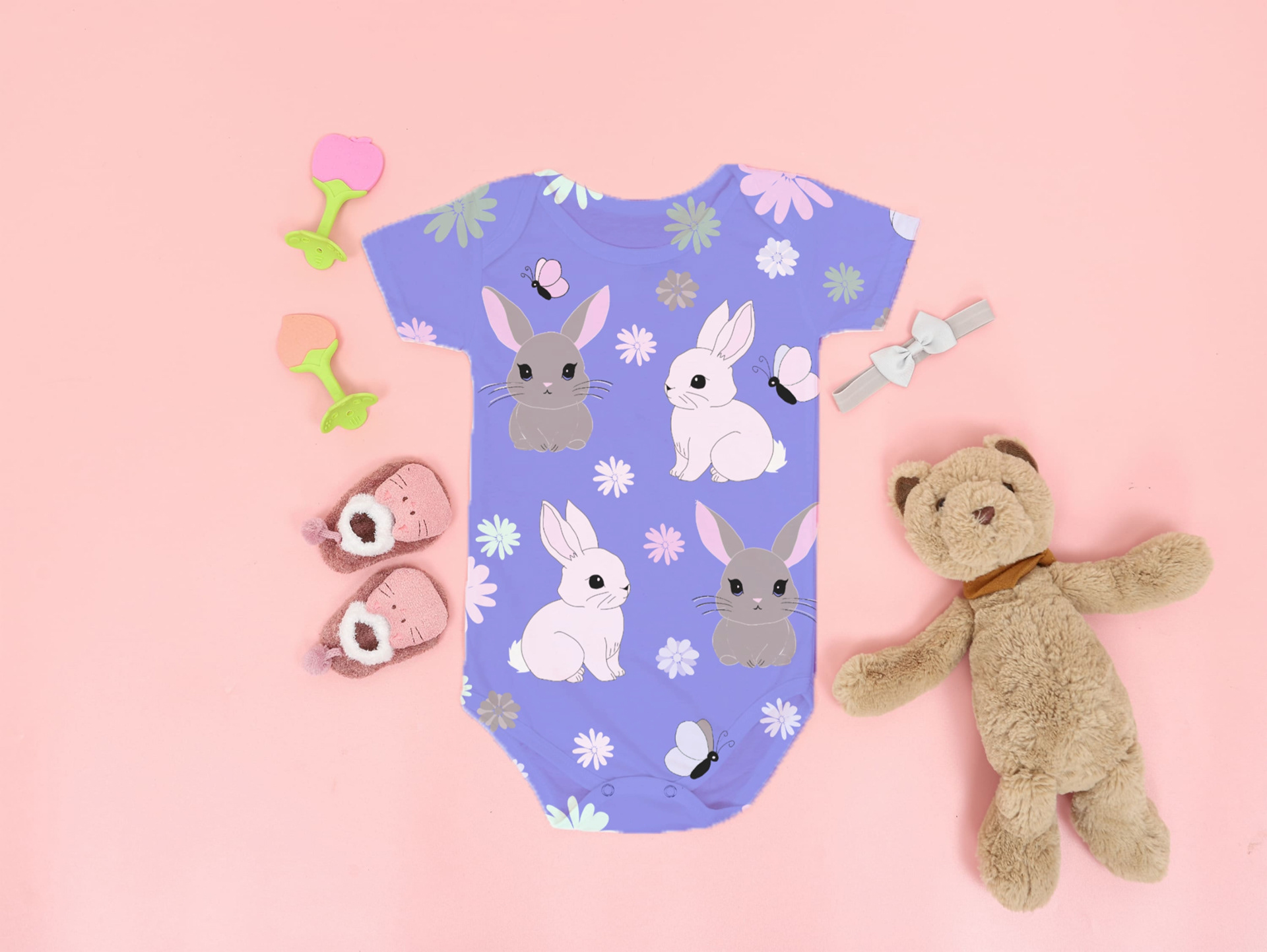 Playful bunnies leap through fields of blooms in these sweet, springtime patterns.