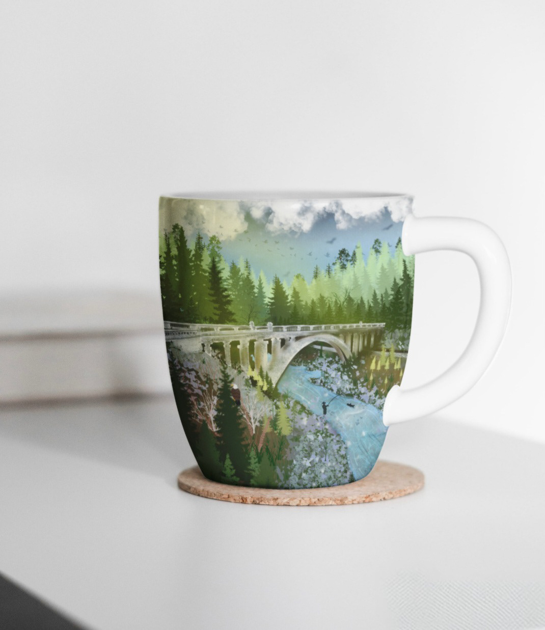 A heartfelt illustrated tribute to Idaho's iconic Rainbow Bridge, capturing its graceful arch nestled among rugged mountains and flowing rivers - a symbol of connections, natural beauty, and the spirit of the Pacific Northwest.